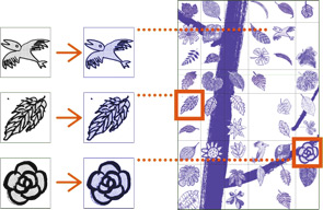 做成瓷砖画的“您的画”被装饰在新博多站的各个地方。千住博和水户冈锐治将您的作品进行了艺术的搭配。(插图为布置示意图)